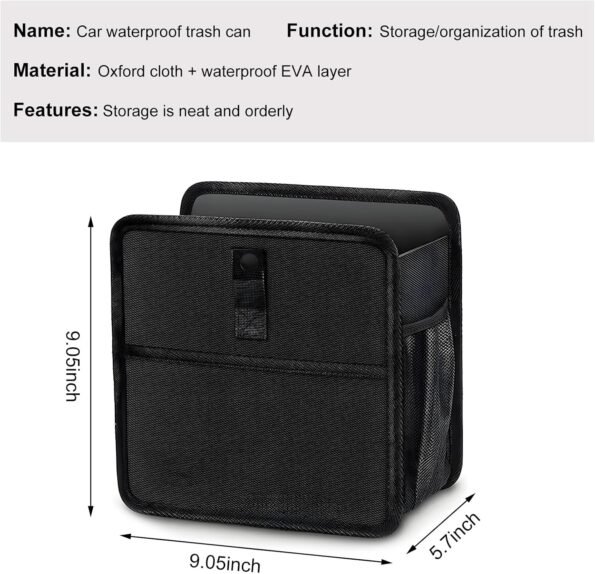 - 【Durable & Stiff】: Made from tough Oxford cloth, this stiff trash bag resists wear and tear. It won’t easily puncture or tear, safeguarding your car’s interior against spills. Additionally, the included sturdy support board keeps the bottom stable, so the storage bag maintains its shape even when filled.