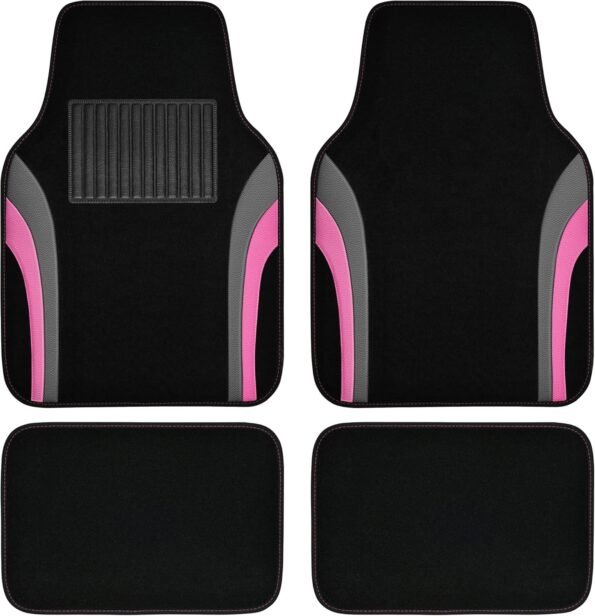 Leather Sporty Car Floor Mats Carpet, Universal Waterproof Automotive Floor Mat Fit for Sedans, Cars, Mid Trucks, Vans, , Set of 4 (Black and Pink)