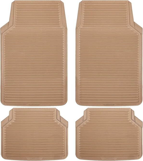 - All Weather All Season Protection: all beige heavy duty rubber car mats use for all season.Easy to clean.ridge channels specifically design to prevent fluids from leaking onto carpets,the deep channels also trap any mud, dirt, water or snow that gets in your car