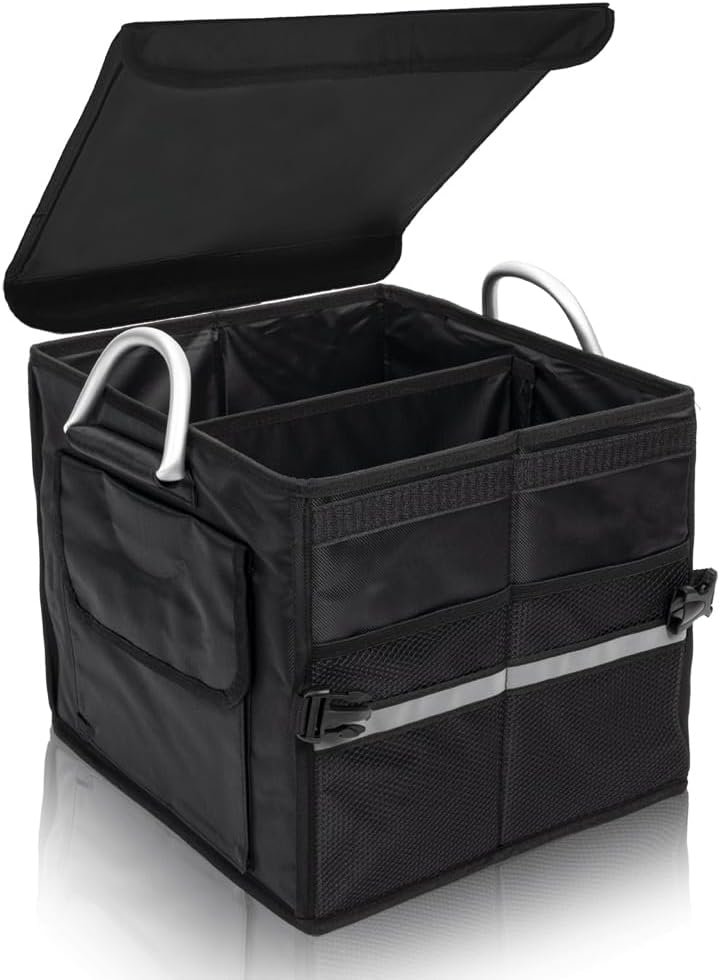 Trunk Organizer With Lid,Small,Black 28L,For SUV Car Truck,Collapsible Waterproof Oxford Fabric,Portable Multipurpose sorting,2-Compartments with Aluminium Alloy Handle