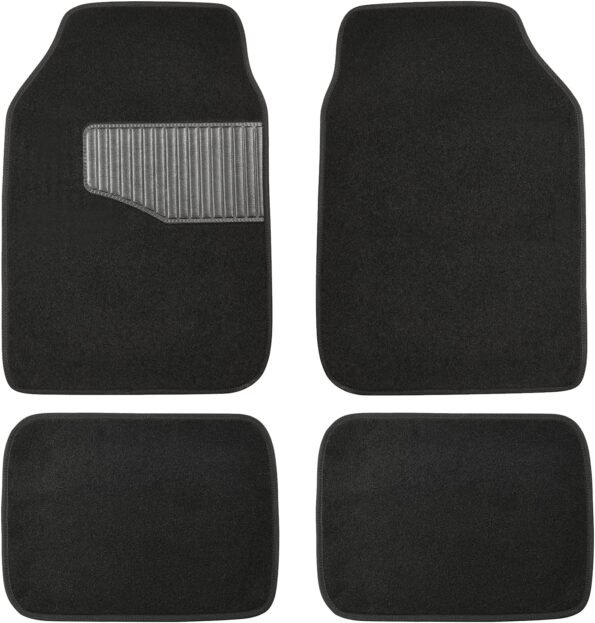 Universal Fit Rubber Carpet Floor Mats For Car Van & Truck, 4 count (Pack of 1), Black, 25″L x 17.5″W (Front), 13″L x 17.5″W(Rear)