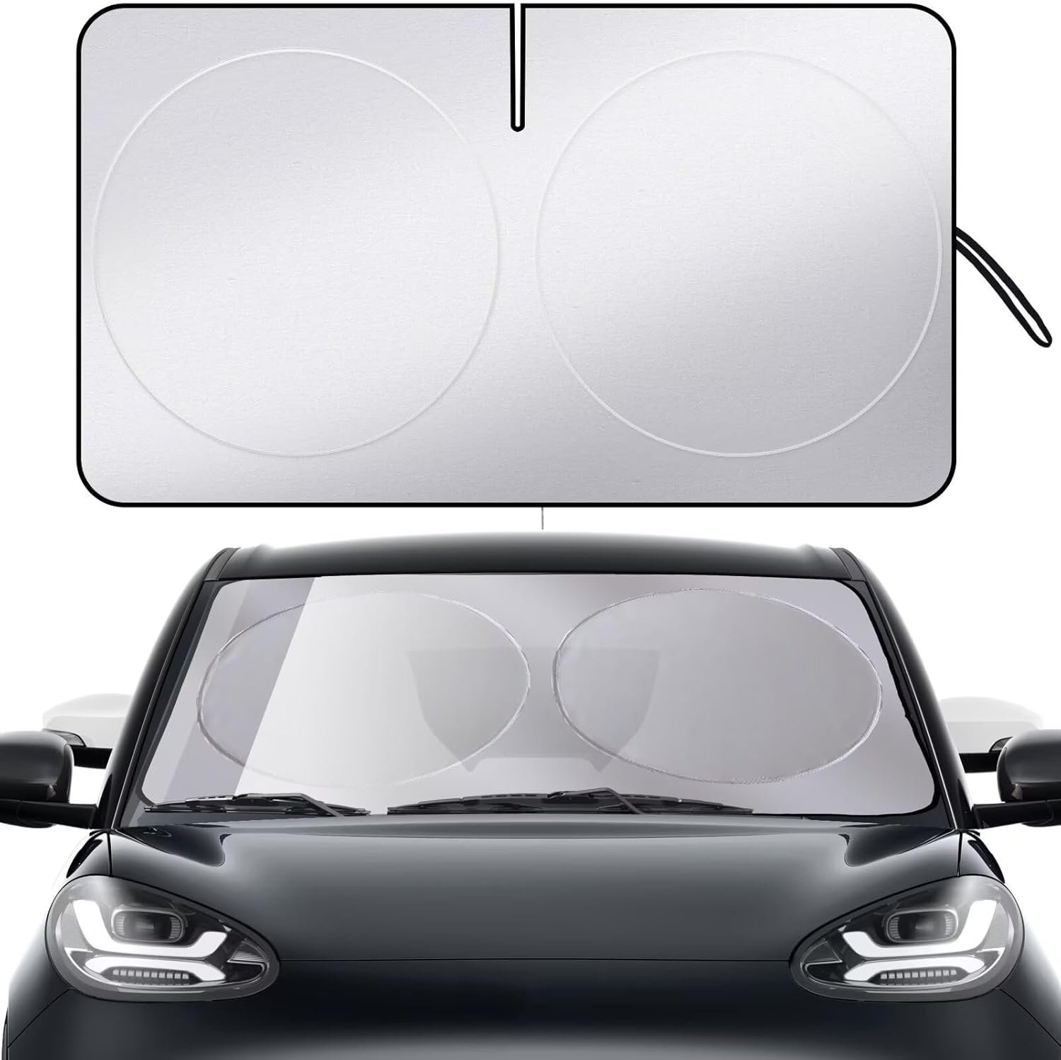- Top Design: made of high quality 240T polyester reflective material with widened edges and reinforced with high strength flexible steel wire, it can cover the windshield shield tightly with 0 leakage edges on the car window. High elasticity memory metal, easy to fold. Durable, lightweight and easy to use.